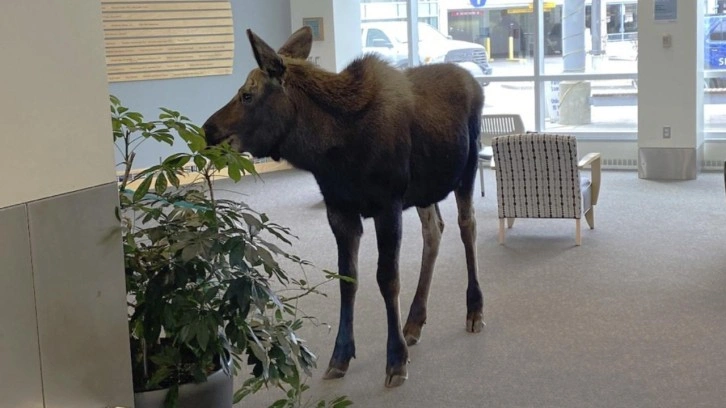 Görevlilerden biri ise geyiğin yediği bitkiden bir parça alarak onu dışarı çekmeye çalıştı. Sonunda geyik, binadan güvenli şekilde çıkarıldı.