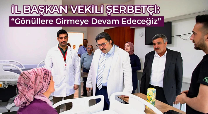 Başhekim Ertuğrul Kılıç ise, “340 yatak kapasiteli hastanemizde hastalarımıza en iyi şekilde hizmet vermek için çalışıyoruz. Şehrimiz sağlık üssü olma yolunda başarı ile ilerliyor. Hemşehrilerimizin sağlığı bizler için en önemli unsur. İl Başkan Vekilimiz Murat Şerbetçi ve yönetimi hastanemizi ve hastalarımızı ziyaret ederek bizleri motive etti. Nazik ziyaretleri ve moralleri adına kendilerine teşekkürlerimi iletiyorum” şeklinde konuştu. Ziyaret kapsamında hastalara ve hastane çalışanlarına bir takım hediyelerde taktim edildi.