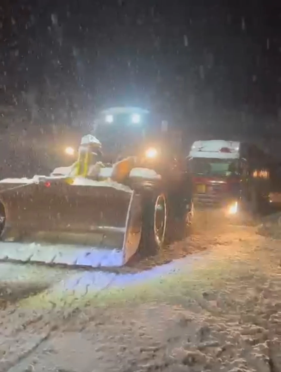 Kar kalınlığının bir metreyi geçtiği adıyaman’ın sincik ilçesine sıkıştırılmış doğalgaz taşıyan tırın ilçeye ulaşması için 3-4 iş makinesi birlikte tırı çekti.