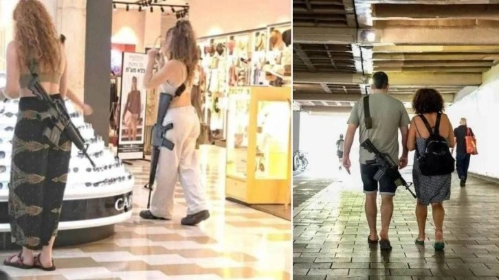 Gazze sokakları sıcak çatışmaya sahne olurken, İsrail sokaklarında sivil halk uzun namlulu silahlarla geziyor. Son olarak İsrail'de bir alışveriş merkezinde sivillerin, uzun namlulu silahlarla dolaştığı görüldü.