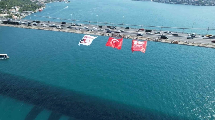 İstanbul’da 15 Temmuz Demokrasi ve Milli Birlik Günü nedeniyle köprülere dev Türk bayrakları asıldı. 15 Temmuz Şehitler Köprüsü’ne asılan dev Türk bayrağı havadan görüntülendi.