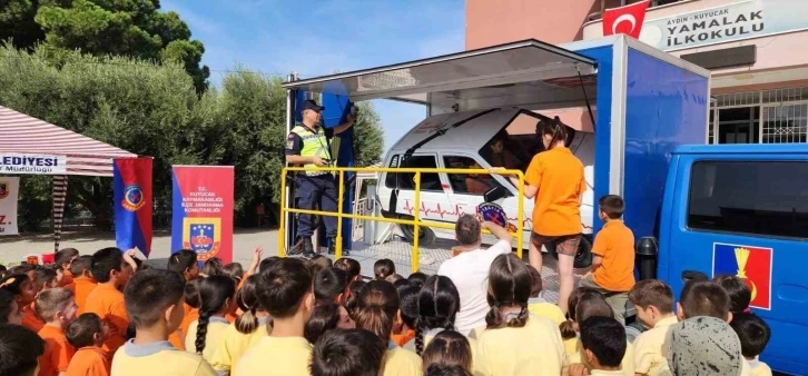 Aydın’da jandarma ekipleri Kuyucak ilçesinde öğrencilere emniyet kemeri takmanın önemini anlattı.