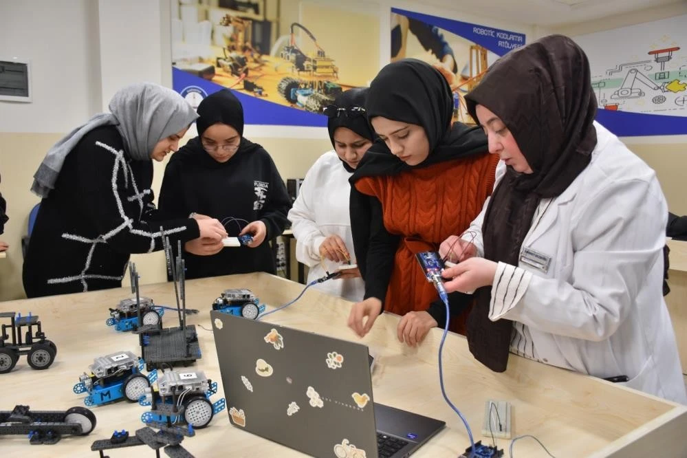 Şahinbey Belediyesi tarafından kadınlara ve çocuklara teknolojiyi sevdirmek, teknolojinin çağ atladığı bu dönemde anneleri ve kızlarını geleceğin dünyasına hazırlamak amacıyla kurulan Robotik Kodlama Atölyesi, bilgi ve teknoloji atölyesi niteliği taşıyor.Şahinbey Belediyesi Karataş Kültür Merkezi'ndeki atölyede arduino setleri, çeşitli sensörler, ultrasonik programlama kitleri, MBlock robot kitleri ve 3D yazıcı gibi gelişmiş ekipmanlar kullanılıyor. Bu altyapı sayesinde çoğunluğu anne ve kızlarından oluşan kursiyerler, hem daha verimli projeler geliştiriyor hem de uygulamalı öğrenmenin keyfini yaşıyor.Hayallerindeki ürünleri tasarlama imkanı buluyorlarÇocukların, gençlerin ve kadınların teknoloji bağımlılıklarının olumlu yöne evrilmesi ve dijital dünyaya uyum sağlamaları amacıyla kurulan tam donanımlı atölyede "düşün, tasarla ve üret" mottosuyla güzel bir atölye ortamı oluştu. Atölyede aldıkları eğitimlerle kendilerini her geçen gün geliştiren anneler ve kızları, hayallerindeki ürünleri ise 3D yazıcılarla tasarlama imkanı buluyor.Atölye sayesinde hayal dünyalarını geliştiren, yeni ürünler üretmeye başlayan ve teknolojiyi olumlu yönde kullanan anneler ve kızları, robotik kodlama ile hayallerini tasarlıyor. Önce kodlama eğitimi verilen kursiyerlere daha sonra sıcaklık sensörü, kızıl ötesi kumanda ve rota izleyen robot gibi hayal gücüne bağlı projeler öğretiliyor."Anne ve kızları kendi zevklerine göre ürün ortaya çıkartıyorlar"Atölyede hem ev hanımlarına hem de çocuklara robotik kodlama eğitimi verdiklerini belirten eğitmen Merve Çekiç, "Robotik kodlama eğitimlerinin ardından 3D tasarımlar yapıyoruz. Kursiyerlerimiz bütün tasarımları kendileri yapıyor. 3D tasarım cihazımızdan da yaptıkları projelerin çıktılarını alıp çocuklara ve ev hanımlarımıza hediye ediyoruz. Çıkarttığımız tasarımları boyayabiliyoruz. Atölyemizde anne ve kızları kendi zevklerine göre hem tasarlıyorlar hem de ürün ortaya çıkartıyorlar. Yaptıkları tasarımları evlerinde kullanılabilecek hale getiriyoruz. Kodlama eğitiminden sonra ise sensörlerle tanışıyoruz. Bir robot sadece dış iskelet değil, içinde birçok sensör ve kodlama barındırıyor. Mesafe, ses ve hareket sensörü gibi birçok sensörü tanıtıyoruz. Projemize uygun sensörleri seçerek ilerliyoruz. Bunları LCD ekrana entegre etmeyi öğreniyoruz ve bu tasarımları daha sonra birleştirerek projeler üretiyoruz" dedi."Çocuklar sadece tüketim değil, üretimi de öğreniyor"Robotik kodlamanın günümüzde çok önemli bir yere sahip olduğunu belirten Çekiç, "Zaten yazılımın temelini atıyoruz. Çocuklar sadece tüketim değil, üretimi de öğreniyor. Mesela bir proje yaparken ya da bir oyun oynarken bile kendine göre önce devreleri kurmayı, tasarlamayı ve üretim yaparak, bir şey ortaya çıkarmayı öğreniyorlar. Bu şekilde de matematiksel beyinleri gelişiyor. Bu ev hanımlarımız için de çok önemli. Hem çocuklarımız hem ev hanımlarımız bir şeyler ürettikleri için çok mutlu oluyorlar. Robotik kodlama anlamında verilmesi gereken tüm eğitimleri veriyoruz" şeklinde konuştu."Çocuklar daha verimli bir zaman geçiriyor"Kursiyerlerden Ülger Tiryaki ise, "Bu atölye hem çocuklarım hem benim için çok verimli oldu. Robotik kodlama eğitimi çocuklarım için daha iyi oldu. Çocuklar evde telefonla veya televizyonla zamanlarını öldüreceğine burada daha verimli bir zaman geçiriyorlar. Daha güzel bilgiler öğreniyorlar. Bu imkanı bize veren Şahinbey Belediye Başkanı Mehmet Tahmazoğlu'na teşekkür ederiz" ifadelerini kullandı."Çok güzel bilgiler öğreniyoruz"İki çocuğuyla birlikte kursa katıldığını belirten Hatice Tiryaki de, "Çocuklarımızla beraber Karataş Kültür Merkezi'ne robotik kodlama öğrenmek için geliyoruz. Çok güzel bilgiler öğreniyoruz. Ben aslında çocuğum için geldim ama Merve hocamızın sayesinde kursa devam ettim. Çok mutluyum. Hiç gelmeyi düşünmezken devam ettim. Çok güzel devam ediyoruz. Çocuklarımı da göndermeyi tekrar düşünüyorum" ifadelerinde bulundu."Kursumuz güzel bir şekilde gidiyor"Özlem İşbilir de, "Ben aslında kızımı getirmiştim. Kızımı getirince kadınlar içinde eğitimin olduğunu öğrendim. Dedim beraber değerlendirelim. Güzel bilgiler öğrendik. Önce klavye öğrendik. Sonra da uygulamaları öğrendik. Kursumuz güzel bir şekilde gidiyor" şeklinde konuştu."Robotik kodlama öğreniyoruz"Aysu Yalçın da, "Günümüzde robotlar bayağı gelişmiş durumda. Biz de bu merkeze gelip robotik kodlama öğreniyoruz, kendimizi geliştiriyoruz. Kursta büyükler de var, bizim gibi gençler de var. Kendi kendilerini geliştiriyorlar. Bizim için iyi oluyor. Her gün buradayız, gayet de güzel zaman geçiriyoruz ve kodlamayı öğreniyoruz. Şahinbey Belediye Başkanı Mehmet Tahmazoğlu'na teşekkür ederiz" diye konuştu.