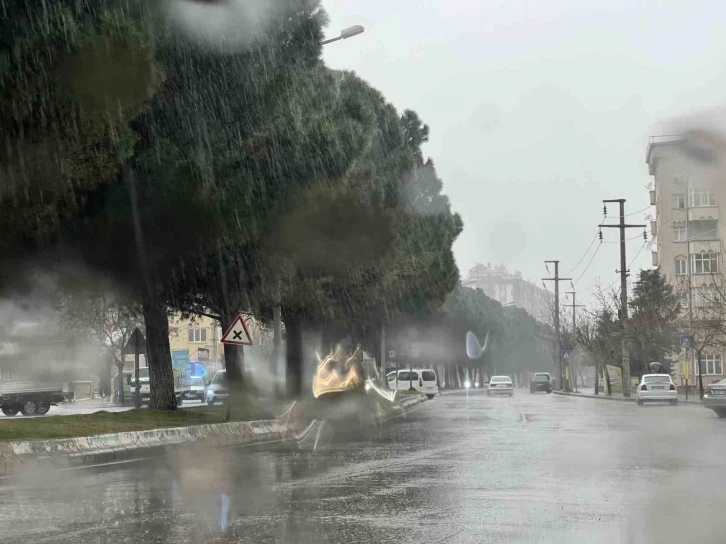 Kentte sabah saatlerinde başlayan yağış, öğle saatlerinde etkisini artırdı. Sağanak nedeniyle cadde ve sokaklarda su birikintisi oluştu, araçlar trafikte ilerlemekte zorlandı.