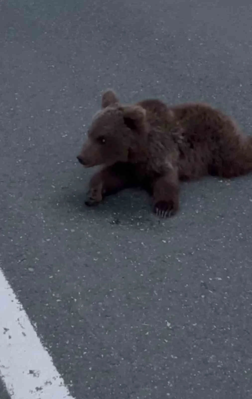 Olay, Safranbolu-Bartın kara yolunun Beştepeler mevkiinde meydana geldi. Güzergahı kullanan sürücüler yolun ortasında hareket etmekte zorlanan ayıyı fark etti.