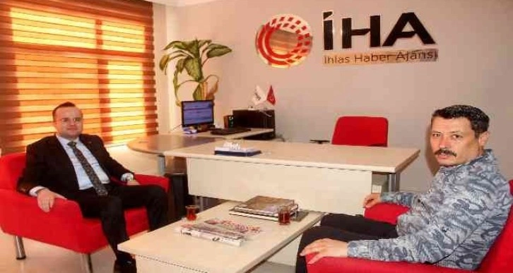 Çelikhan Kaymakamı Abdullah Aslantürk, İHA Adıyaman Bürosunu ziyaret ederek Muhabir Ahmet Arslantaş ile sohbet etti.