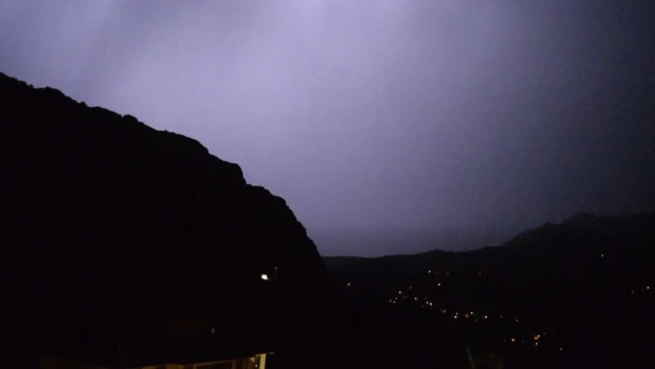 Kemaliye’de gökyüzünü şimşekler aydınlattı