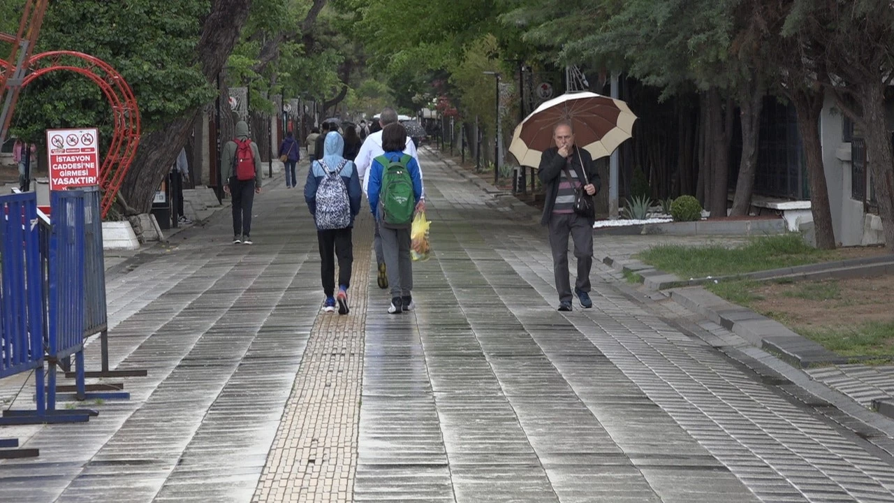 Kırklareli’nde öğle saatlerinde çiseleyerek başlayan yağış kısa süre etkisini artırdı. Yağış sebebiyle bazı vatandaşlar şemsiyeleriyle korunmaya çalışırken, bazıları da otobüs durakları ve dükkanların tenteleri altında korunmaya çalıştı.