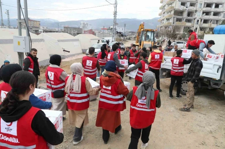 Türk Kızılay, deprem bölgesinde hijyen malzemesi dağıtımlarına aralıksız olarak devam ediyor. Kahramanmaraş merkezli 11 ili etkileyen depremin ardından Türk Kızılay tüm afet bölgesinde günde üç öğün olarak verdiği beslenme desteğinin yanı sıra özellikle çadır kentlerde ve kırsal kesimlerde kalan afetzedelere diğer insani yardım malzemelerini de ulaştırıyor. Kızılay, battaniye, kışlık kıyafet, ısıtıcı, mama, çocuk bezi, gıda kolisi ve hijyen kolisi gibi malzemeleri dağıtımına devam ediyor. Yüzbinlerce giysi depremzedelere ulaştırıldı