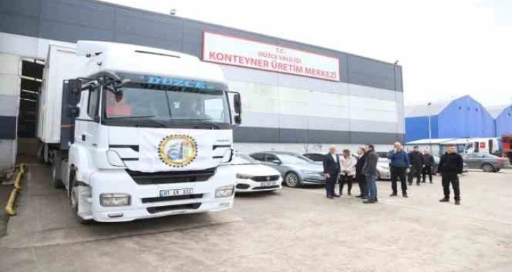 Kahramanmaraş merkezli meydana gelen depremlerin ardından bölgede konteyner kent kurulması için çalışmalar gerçekleştiren Düzce Valiliği, kentte 3 farklı noktada konteyner üretim merkezi kurdu. Burada üretilen konteynerlerin sevkiyat çalışma