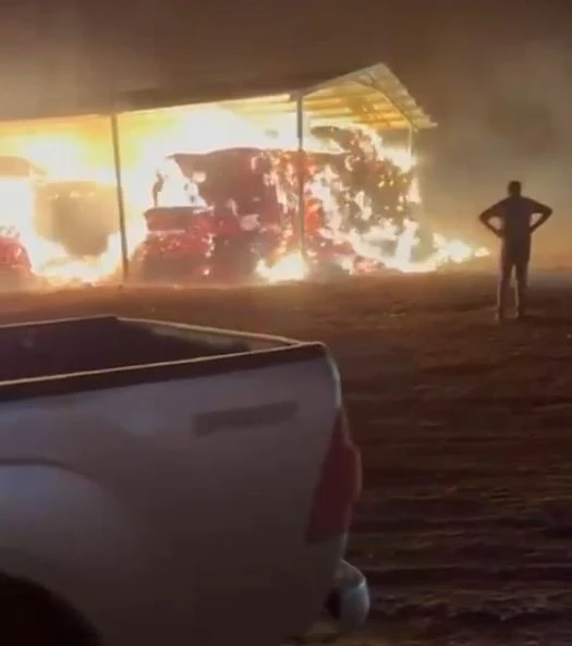 Diğer yangın ise, Kuskuncuk Mahallesi’nde bir çiftlikte çıktı. İddiaya göre, köz halindeki ateşin rüzgarla sıçraması sonucu bir çiftlikteki saman balyalarında yangın başladı. Kısa sürede büyüyen alevler, saman balyalarını sardı. İhbar üzerine adrese çok sayıda itfaiye ekibi sevk edildi. Olay yerine gelen itfaiye ekipleri yangına müdahale ederken, yoğun duman nedeniyle çevrede güvenlik önlemleri alındı. Yangında büyük çapta maddi zarar meydana geldi.
