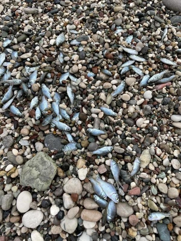 Adem AKALAN/ANTALYA,(DHA) - ANTALYA'da Konyaaltı Sahili'nde balık ölümleri görüldü. Akdeniz Üniversitesi (AÜ) Su Ürünleri Fakültesi Öğretim Üyesi Prof. Dr. Mehmet Gökoğlu, yaşanan ölümlerin kıyılarda oluşan gölcüklerde yaşayan balıklara denizden gelen dalgaların vurması sonucu meydana geldiğini ifade etti. Antalya'nın dünyaca ünlü Konyaaltı Sahili'nde kıyıya yüzlerce ölü balık vurdu. Vatandaşların cep telefonu kamerasıyla kaydettiği görüntülerde yüzlerce küçük balığın kıyıda telef olduğu görüldü. AÜ Su Ürünleri Fakültesi Öğretim Üyesi Prof. Dr. Mehmet Gökoğlu, “Bunlar küçük balıklar. Muhtemelen kıyılarda oluşan gölcüklerde mahsur kalmış balıklar. Dalganın vurmasıyla da deniz suyuna maruz kalınca ölmüşler. Hepsi aynı tür balıklar. Büyük bir zehirlenme değil. Tatlı suyun olduğu yere tuzlu su geldiğinden dolayı balıklar ölmüştür. Dalgaların sonucunda meydana gelmiş durum olabilir" dedi. (DHA)