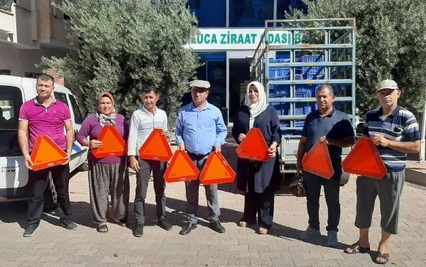 Ramazan SARIKAYALI/KUMLUCA, (DHA)- ANTALYA'nın Kumluca ilçesinde traktör sahiplerine reflektör dağıtıldı. Antalya Büyükşehir Belediyesi Tarımsal Hizmetler Dairesi Başkanlığı Bitkisel Üretim ve Eğitim Şube Müdürlüğü ve Kumluca Ziraat Odası Başkanlığı iş birliğinde çiftçilere römork reflektörü dağıtıldı. Kumluca Ziraat Odası Hizmet Binası önünde gerçekleşen reflektör dağıtımını Antalya Büyükşehir Belediyesi Tarımsal Hizmetler Dairesi Başkanlığı Bitkisel Üretim ve Eğitim Şube Müdürlüğü'nde görevli ziraat mühendisi Hatice Parlak ve Kumluca Ziraat Odası Başkanı Hidayet Kökce birlikte gerçekleştirdi. Hatice Parlak, "Antalya Büyükşehir Belediyesi olarak çiftçilerimize birçok alanda destek oluyoruz. Kumluca'ya 75, Finike ilçesine 50 reflektör dağıttık. Çiftçilerimizin can ve mal güvenliğini korumak, tarımsal üretimin sürekliliğini sağlamak amacıyla reflektör dağıtıyoruz" dedi. Ziraat Odası Başkanı Hidayet Kökce de "Kumluca'mızda çiftçilerimiz ürettikleri ürünleri toptancı haline götürmek için otomobil ve traktörlerin arkasındaki römorkları sıklıkla kullanıyor. Bu yüzden Antalya Büyükşehir Belediyesi tarafından yapılan bu uygulamaya biz de destek verdik. Tarımsal üretimin sürdürülebilirliği ve çiftçilerimizin can ve mal güvenliğini sağlamak için gerekli olan bu uygulamaya destek verdiği için Antalya Büyükşehir Belediyesi'ne teşekkür ederim" diye konuştu. (DHA)