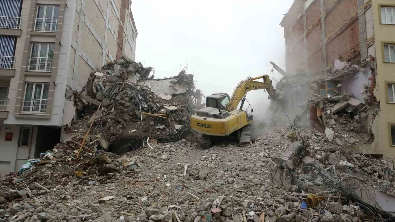 Malatya’da, Kahramanmaraş merkezli 6 Şubat 2023’te meydana gelen iki büyük depremde hasar alan binaların yıkım işlerine bugünde devam edildi.