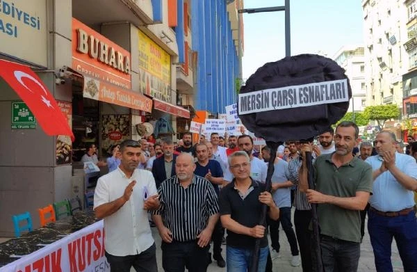 Soner AYDIN/MERSİN, (DHA)- MERSİN'de tarihi Zafer Çarşı esnafı Büyükşehir Belediyesinin deprem riski nedeniyle aldığı tahliye kararını protesto etti. Merkez Akdeniz ilçesinde bulunan tarihi Zafer Çarşısı esnafına deprem riski nedeniyle Büyükşehir Belediyesince tahliye kararı alındı. Karara karşı bir araya gelen esnaf, yaptırdıkları siyah çelenkle Büyükşehir Belediyesi ek hizmet binasına yürüdü. Çelengi ek hizmet binası önüne bırakan esnaf, tahliye için yasal sürecin beklenmesini istedi. Esnaf adına konuşan Mersin Çarşı Esnafları Dernek Başkanı Bekir Algüllü, "Büyükşehir Belediye Başkanı Vahap Seçer, belediye başkanı seçilmeden önce bizleri ziyaret edip, restore sözü vermişti. Seçildikten sonra da bizim bulunduğumuz bölgeyi yıkacağını, esnafları mağdur etmeyeceğini söyledi. Şimdi ise bizi buradan çıkartmak istiyor. Bizler her seferinde merkezinde esnafın olduğu her projeye destek sözü verdik. Biz burada yerinde dönüşüm istiyoruz" dedi. Açıklamanın ardından esnaf, ellerindeki dövizlerle caddeyi bir süre trafiğe kapattı. (DHA)