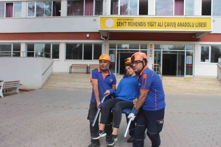 Adıyaman İl Milli Eğitim Müdürlüğü koordinesinde Yiğit Ali Çavuş Anadolu Lisesinde gerçekleştirilen tatbikatta senaryo gereği çalınan sirenle deprem başladı. Okulda bulunan öğrenciler ile okul idaresi depremin başlamasıyla bulundukları yerde kendilerini güvene alarak sarsıntının bitmesini bekledi. Sarsıntının sona ermesiyle birlikte öğrenciler okulu hızlı bir şekilde tahliye ederek güvenli alanda bekledi. Deprem esnasında senaryo gereği yaralanan bir öğrenci, olay yerine gelen AFAD ekiplerinin çalışmaları sonucu halat yardımıyla okuldan çıkarıldı. Daha sonra olay yerine gelen UMKE ve sağlık ekiplerince ilk müdahalesi yapılan yaralı, hastaneye kaldırıldı.