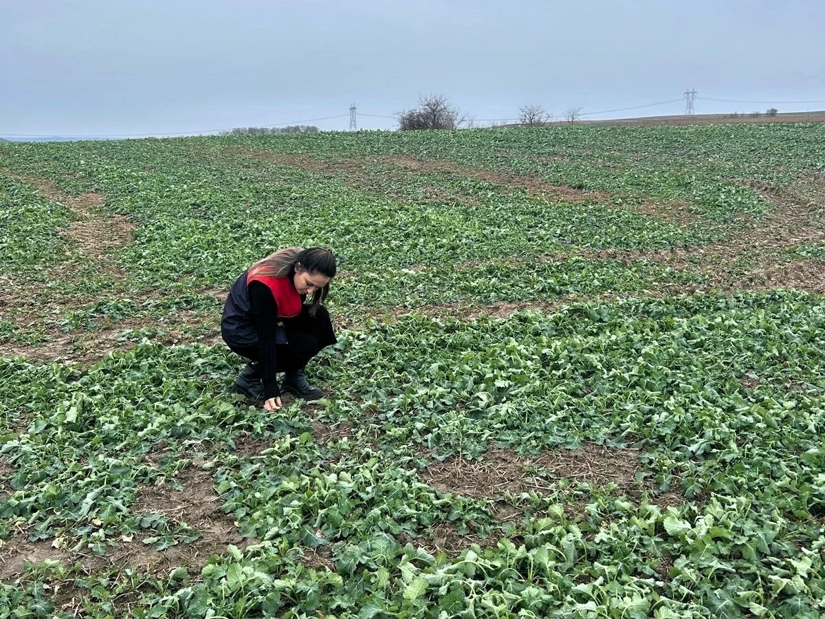 Pehlivanköy İlçe Tarım ve Orman Müdürlüğü teknik ekipleri, anıza kanola ekimi yapılan tarlalara bitkinin fizyolojik evresi, kök gelişimi ve toprak nem durumuyla ilgili incelemeler yaptı. Çiftçiye bilgi veren ekipler, kuraklık etkilerinin azaltılmasında anıza ekimin önemli olduğunu, yağmurun toprağa emilimini artırdığını ve buharlaşmayı azaltarak rutubetin toprakta tutulmasını sağladığını bildirdi.