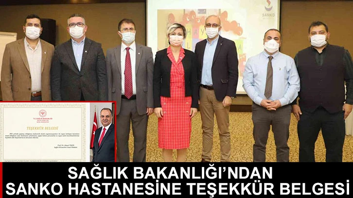 Sağlık Hizmetleri Genel Müdürü Prof. Dr. Ahmet Tekin adına takdim edilen belgede, “2021 yılında yapmış olduğunuz kadaverik donör organizasyonları ile organ nakli bekleyen hastalara umut olduğunuz için hastaneniz yönetimine, yoğun bakım personeline ve organ nakli koordinatörlerine teşekkür ederek, başarılarınızın devamını dilerim” ifadeleri yer aldı.