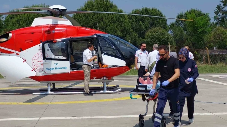Samsun’da beyin kanaması şüphesi olan 75 yaşındaki yaşlı kadın ambulans helikopterle hastaneye sevk edildi.