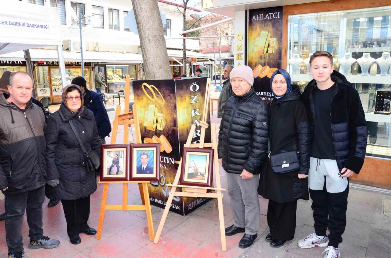 şehit okan divrik’in şehadetinin 25’nci yıl dönümünde, babasının kuyumcular çarşısındaki işyerleri önünde gerçekleştirilen pilav hayrına şehit babası hüseyin divrik (soldan 3. ), annesi nevin divrik (soldan 2. ), ağabeyi hakan divrik (soldan 1. ), kız kardeşi alev divrik (sağdan 2. ), şehidin adını taşıyan oğlu okan divrik (sağdan 1. ) de katıldı.