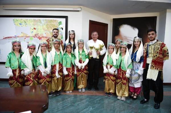ADANA,(DHA)-ADANA Seyhan Belediyespor Kulübü Halk Oyunları takımı, Türkiye Halk Oyunları Federasyonu’nun organizesinde Kulüplerarası Halk Oyunları İl Birinciliği yarışmalarında üç dalda birinci oldu. Bölge şampiyonasında Adana’yı temsil etme hakkı kazanan Seyhan Belediyespor Kulübü Halk Oyunları takımı, Seyhan Belediye Başkanı Akif Kemal Akay’ı kupalarıyla ziyaret edip desteklerinden dolayı teşekkür etti. Belediye Başkanı Akif Kemal Akay, “Dinleme, benzetme, oynama, çalma, koordinasyon, gözlemleme, beğenme davranışlarını kazandırabilme, ekip çalışması sonucunda paylaşmayı öğrenebilme gibi bir çok kazanımı bulunan halk oyunları branşımızı daha yaygınlaştırmak için imkanlarımız dahilinde desteğimizi sürdüreceğiz” dedi. Akay, halk oyunları takımından Cumhuriyetin ilanının 100.yılı olan 29 Ekim 2023 tarihinde belediye olarak düzenleyecekleri etkinliklerde güzel bir gösteri sunumu beklediklerini de ifade etti.(DHA)