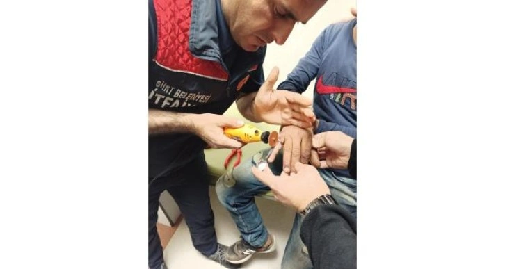 Siirt'te bir gencin parmağına sıkışan yüzük, itfaiye ekiplerince çıkarıldı.
