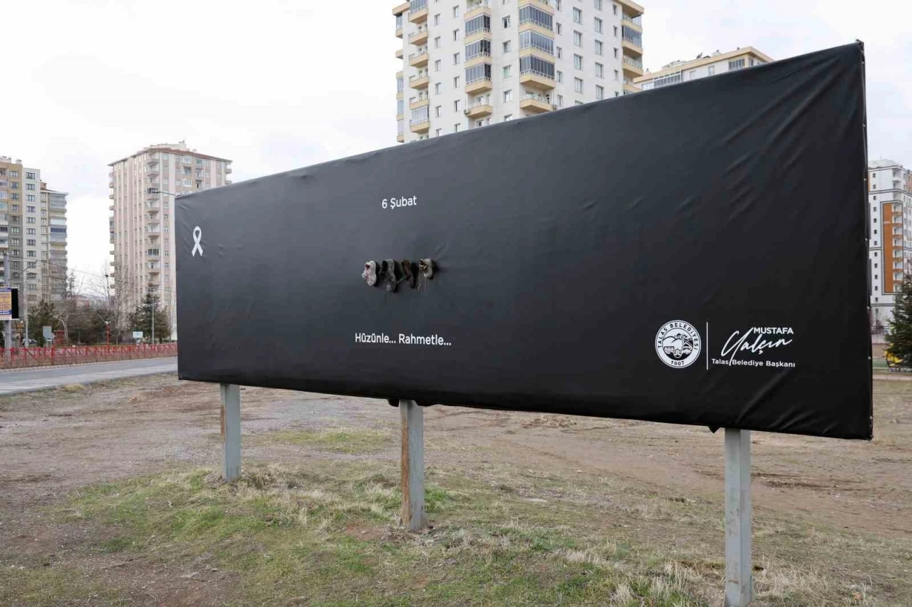 Talas Belediyesi, 6 Şubat depremlerinin yıl dönümünde anlamlı bir farkındalık çalışmasına imza attı. İlçenin farklı noktalarına asılan billboardlarda, depremde hayatını kaybeden vatandaşlarımız "Hüzünle... Rahmetle..." mesajıyla anılıyor.