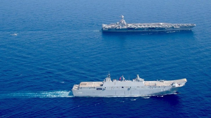 Türk donanmasının amiral gemisi TCG Anadolu'yla, ABD'ye ait uçak gemisi USS Gerald R. Ford, Doğu Akdeniz'de birlikte tatbikat gerçekleştirdi.