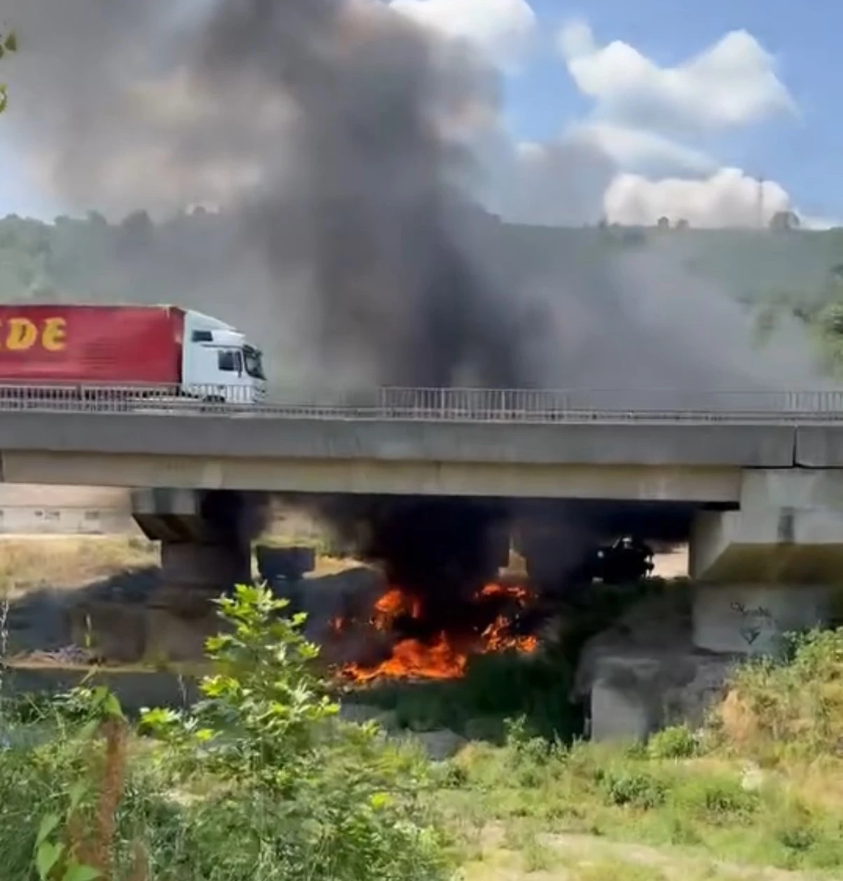 TEM Otoyolu’nun Düzce geçişinde köprü altında yakılan ateş, yolda ilerleyen sürücüleri tedirgin etti.
