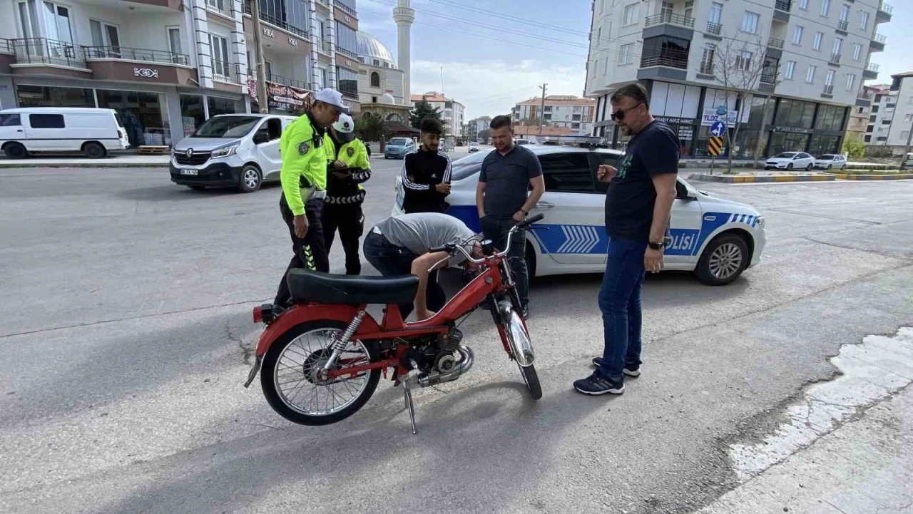 Aksaray’da trafik ekiplerinin durdurduğu plakasız ve aynasız motosikletin kasksız olan sürücüsüne 26 bin 965 lira ceza kesildi.