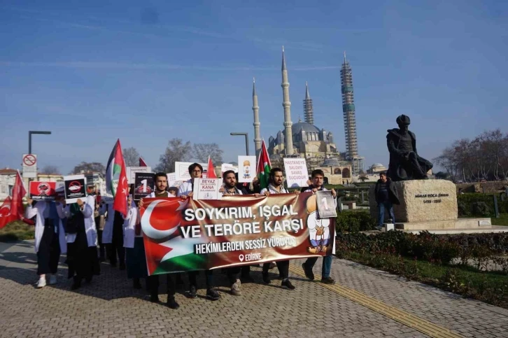 Edirne’de Tıp Fakültesi öğrencileri terör, soykırım ve işgale karşı tepki göstermek amacıyla sessiz yürüyüş gerçekleştirdi.