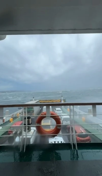 Yaklaşık 2 saattir deniz ortasında araçlarıyla mahsur kalan vatandaşlar kurtarılmayı beklerken, gemi kaptanı tarafından sık sık sakin olunması konusunda uyarıların yapıldığı öğrenildi.
