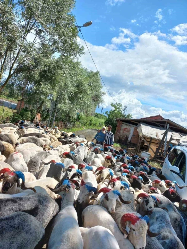 Trabzonspor fanatiği olan besici Ramazan Aysoy, yaklaşık 2 bin 500 tane keçi ve koçunun boynuzunu bordo-maviye boyadı.