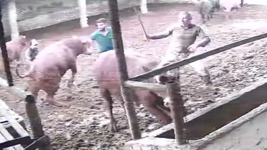 Amasya’nın Suluova ilçesinde büyükbaş hayvan yetiştiriciliği yapılan bir çiftlikte besiciler hayvanları bir araya toplamaya çalışıyordu. O sırada yön değiştiren bir boğa zıplayarak boynuzuyla besiciye vurdu. Aldığı şiddetli darbeyle kendisini yerde bulan besici bir anda neye uğradığını şaşırdı.