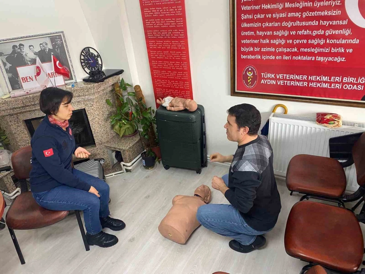 Aydın’da veteriner hekimlere yönelik düzenlenen ilk yardım güncelleme eğitiminde, sertifikalı veteriner hekimler acil sağlık uygulamalarına ilişkin bilgilerini tazeledi. Aydın Veteriner Hekimleri Odası Başkanlığı Hizmet Binası Toplantı Salonu’nda, ilk yardım güncelleme eğitimi gerçekleştirildi. Aydın İl Sağlık Müdürlüğü Sağlık Hizmetleri Başkanlığı Acil Sağlık Birimi eğitmenleri tarafından verilen eğitim, daha önce oda bünyesinde düzenlenen ilk yardım eğitimine katılarak İlk Yardım Sertifikası almaya hak kazanan veteriner hekimlere yönelik olarak gerçekleştirildi. Güncelleme eğitimi kapsamında, acil durumlarda doğru ve hızlı müdahalenin önemi vurgulanırken, temel ilk yardım uygulamaları hakkında güncel bilgiler paylaşıldı. Aydın Veteriner Hekimleri Odası tarafından yapılan açıklamada, eğitmenlere ve eğitime katılım sağlayan meslektaşlara teşekkür edilerek, çalışmalarında başarılar dilendi.