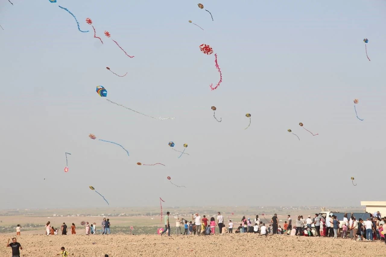 Suriye sınırında yer alan Şanlıurfa’nın Ceylanpınar ilçesinde bir araya gelen yüzlerce aile, uçurtma uçurarak gökyüzünde renkli görüntüler oluşturdu.