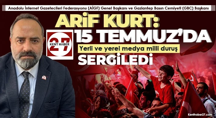 Milletin çok büyük bir destan yazdığını ifade eden Başkan Kurt, “O gece, başta Gaziantep olmak üzere Türk medyası da çok büyük bir sınav verdi. Yaşanan hadiseleri doğru ve zamanında vatandaşa duyurmak adına büyük görevler üstlendi. 15 Temmuz destanı üzerine neler söylense, hangi resimler çizilse hiçbir kare o geceyi anlatamaz. O geceyi yaşayanlar demokrasinin, memleketin, ezanın, mukaddesatın ne anlama geldiğini çok iyi bilir. Bu hadise ve verilen mücadele Nesillerden nesillere aktarılacak. Bu destan dünya demokrasi tarihinin 15 Temmuz 2016’da Türkiye’yi işgal etmek isteyen cuntacı bir FETÖ terör örgütü vardı ama Türk’üyle, Kürt’üyle, zenginiyle, fakiriyle, yerel ve ulusal medyasıyla toplumun tüm kesimleriyle 85 milyon yüce Türk milleti Cumhuriyeti korudu diye dünya demokrasi tarihine 15 Temmuz destanı olarak geçecektir. Bu vesile o gece vatanını korkmak için gözünü kırpmadan hayatını kaybeden de oktadi şehitlerine Allah’tan rahmet, yaralıla ve Gazilerimize acil şifalar ve hayırlı ömürler diliyor, Milli duruş sergileyen Gazeteci dostlarımıza teşekkürlerimi sunuyorum”diye konuştu.