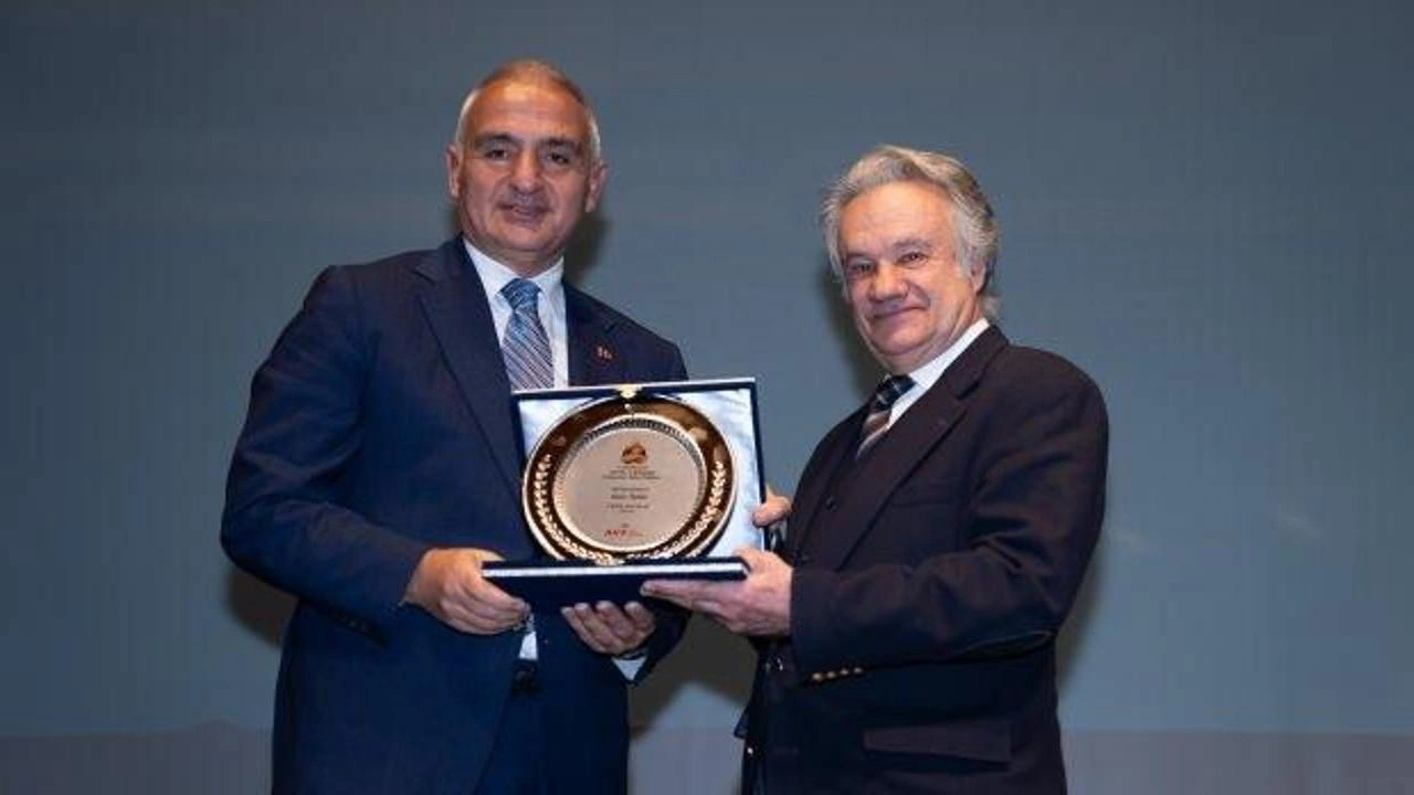 Alevi Dedesi Ahmet Uğurlu'ya onur ödülünü Bakan Tekin verirken, Harvard Üniversitesi Öğretim Üyesi Prof. Dr. Cemal Kafadar'ın onur ödülünü ise Bakan Ersoy takdim etti.