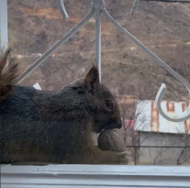 Taşdibi Mahallesi’nde aç kalan sincaplar, mahalle sakinlerinin pencerelerine misafir oluyor. Mahalle sakinlerinden Selami Bozkurt, sincapları Eğin dutu ve cevizle besleyerek onlara kış boyunca destek oluyor.