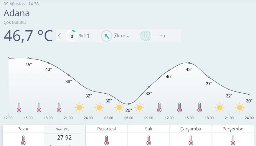 Meteoroloji Genel Müdürlüğü verilerine göre Adana’da Ağustos ayında son 95 yılın sıcaklık rekoru 46,7 derece ile kırıldı.