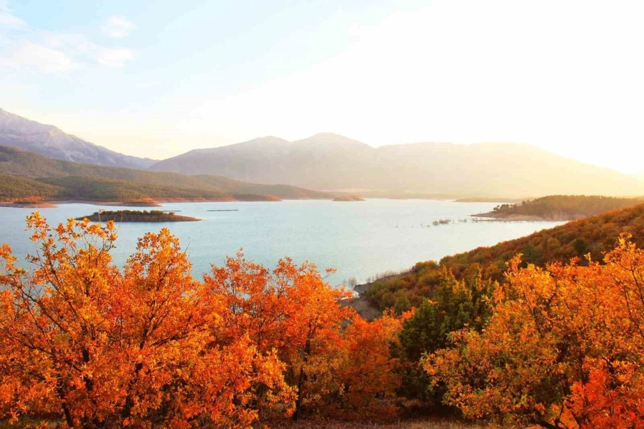 Kahramanmaraş’ın Göksun ilçeasinde Adatepe Barajı etrafı sonbahar ile birlikte renk cümbüşüne dönüştü.