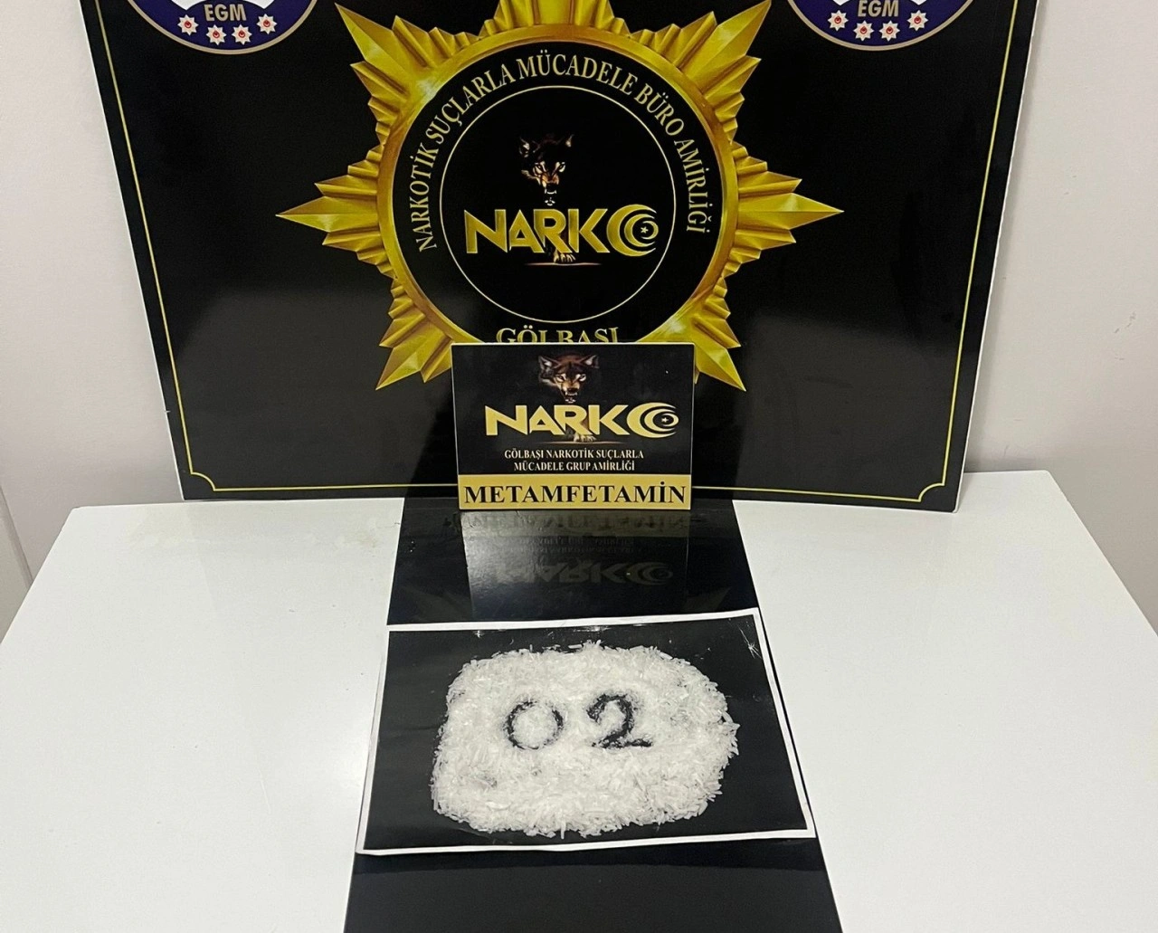 Edinilen bilgiye göre Gölbaşı Narkotik Suçlarla Mücadele ekiplerince şüphe üzerine durdurulan bir araçta Gölbaşı Cumhuriyet Başsavcılığı talimatıyla arandı. Yapılan aramada toplamda yaklaşık 63 gram metamfetamin ve 3,6 gram sentetik kannabinoid ele geçirildi. Uyuşturucu maddeleri muhafaza altına alınırken araçta bulunan 2 şahıs gözaltına alındı. Emniyette işlemleri tamamlanan 2 şahıs daha sonra Gölbaşı Adliyesi’ne sevk edildi. Burada şahıslardan 1’i tutuklanarak cezaevine gönderilirken 1 şahıs ise adli kontrol şartıyla serbest bırakıldı.
