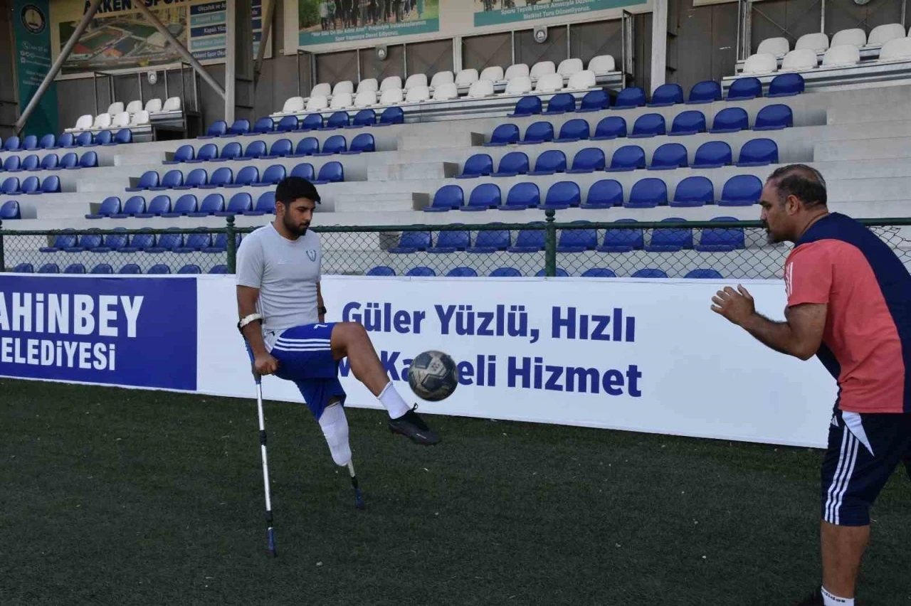 Şahinbey Ampute Futbol Takımı’nın en başarılı oyuncusu Esen, elde ettiği başarılara yenilerini ekleme hedefiyle çalışmalarını Şahinbey Belediyesi’nin Akkent Spor Köyü’ndeki sahada aralıksız sürdürüyor.