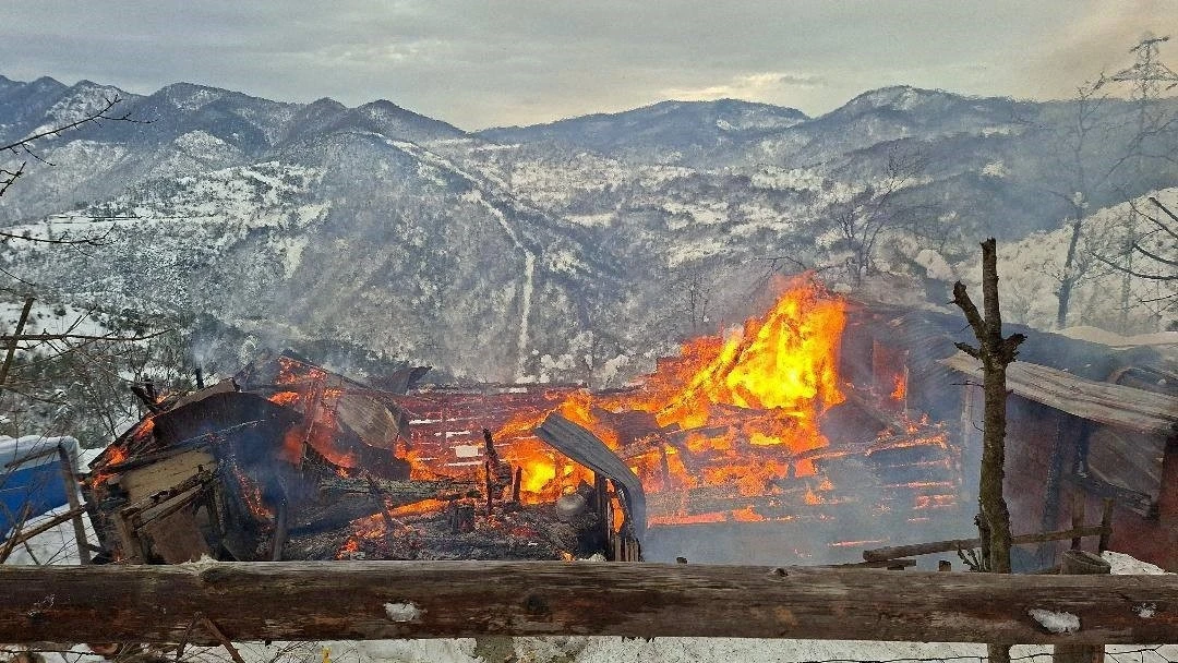 Karabük’ün Yenice ilçesinde alevlere teslim olan ahşap ev tamamen yanarak kullanılmaz hale geldi.
