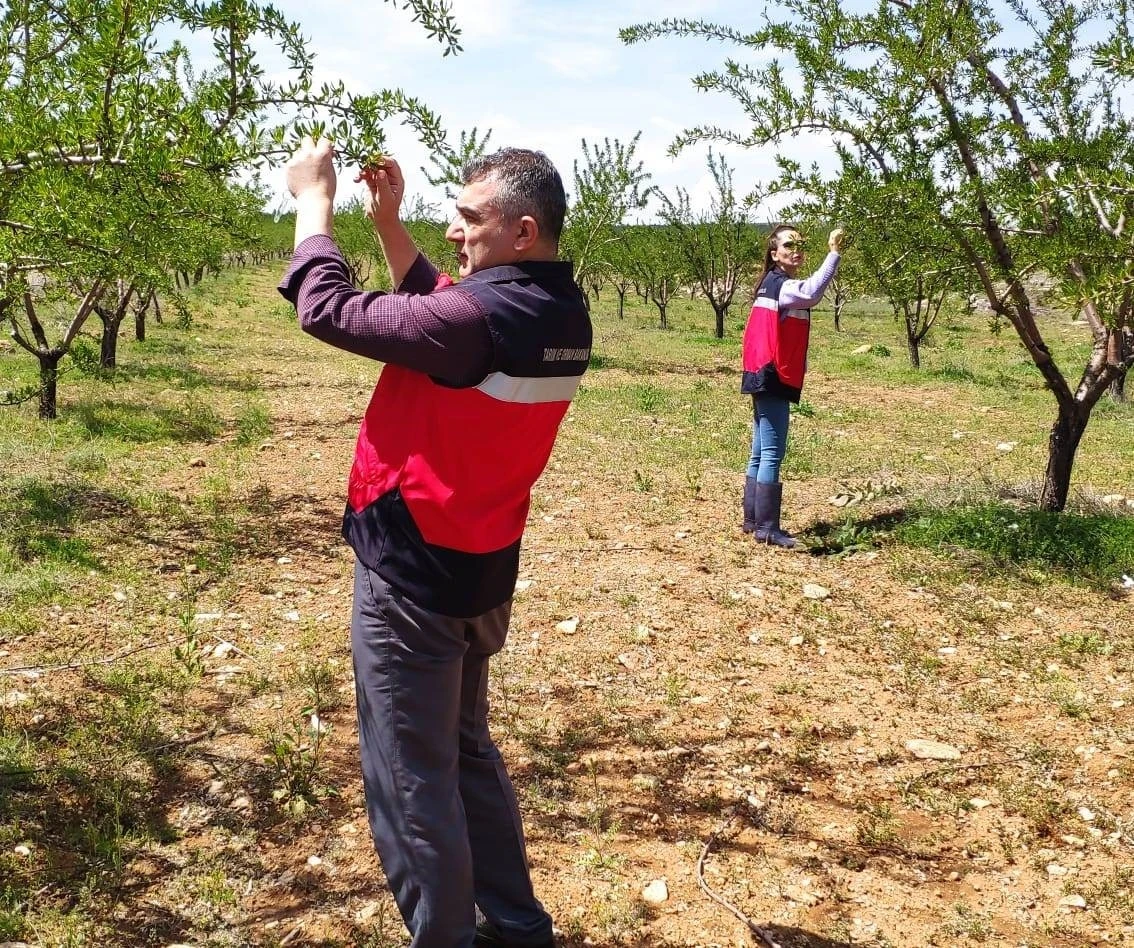 İlçe Tarım ve Orman Müdürlüğü teknik personeli tarafından ilçe merkezi ve köylerinde 11-14 Nisan tarihlerinde meydana gelen zirai don sonrası üreticilerin müracaatlarına binaen hububat ekili alanlar ile ceviz ve badem dikili arazilerde fenolojik gözlem gerçekleştirirken, zirai don zararı olup olmadığının kontrollerini de yapılıyor.