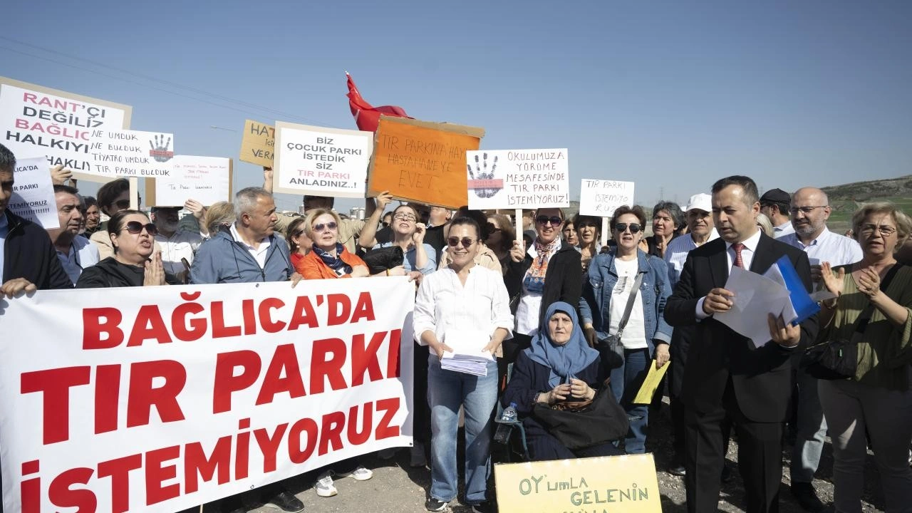 Mahalle sakinleri, 52 dönüm arazi üzerine kurulan tır parkında bir araya gelerek basın açıklaması yaptı.