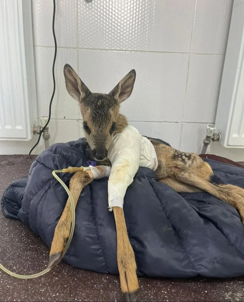 Çankırı’da bir aracın çarpması neticesinde yaralananan yavru karaca, ekipler tarafından tedavi altına alındı.
