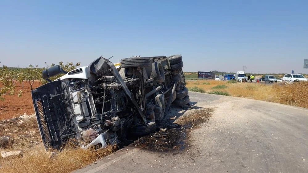 Araçla çarpışan kamyon yan yattı: 1 yaralı