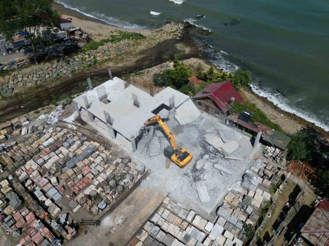 Trabzon’un Arsin ilçesi Güzelyalı Mahallesi’nde kıyı kenar çizgisi içerisinde inşa edilen ve kamuoyunda büyük tartışmalara yol açan kaçak yapının yıkımı gerçekleştirildi. Yıkım çalışmaları, Trabzon Büyükşehir Belediyesi ve Arsin Belediyesi ekiplerinin koordinasyonuyla yapıldı. Söz konusu yapı mevzuata aykırı bulunurken, daha önce mühürlenmiş ancak inşaata devam edilince Arsin Belediyesi yeniden işlem başlatmıştı.
