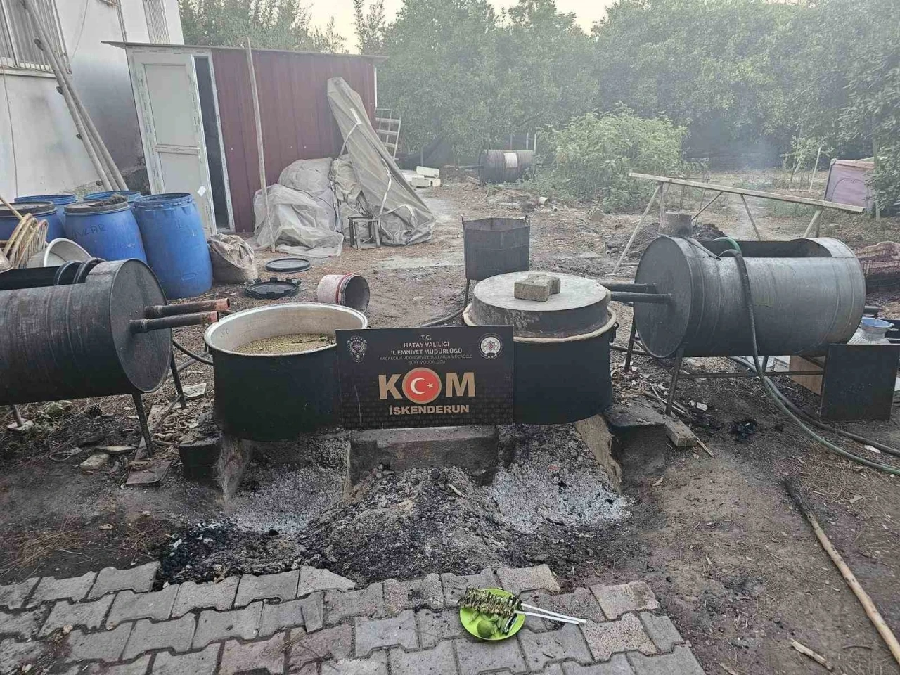 Hatay’ın Arsuz ilçesinde belirlenen 2 adreste yapılan aramada 2 bin 940 litre sahte içki ve yapımında kullanılan malzemeler ele geçirildi.
